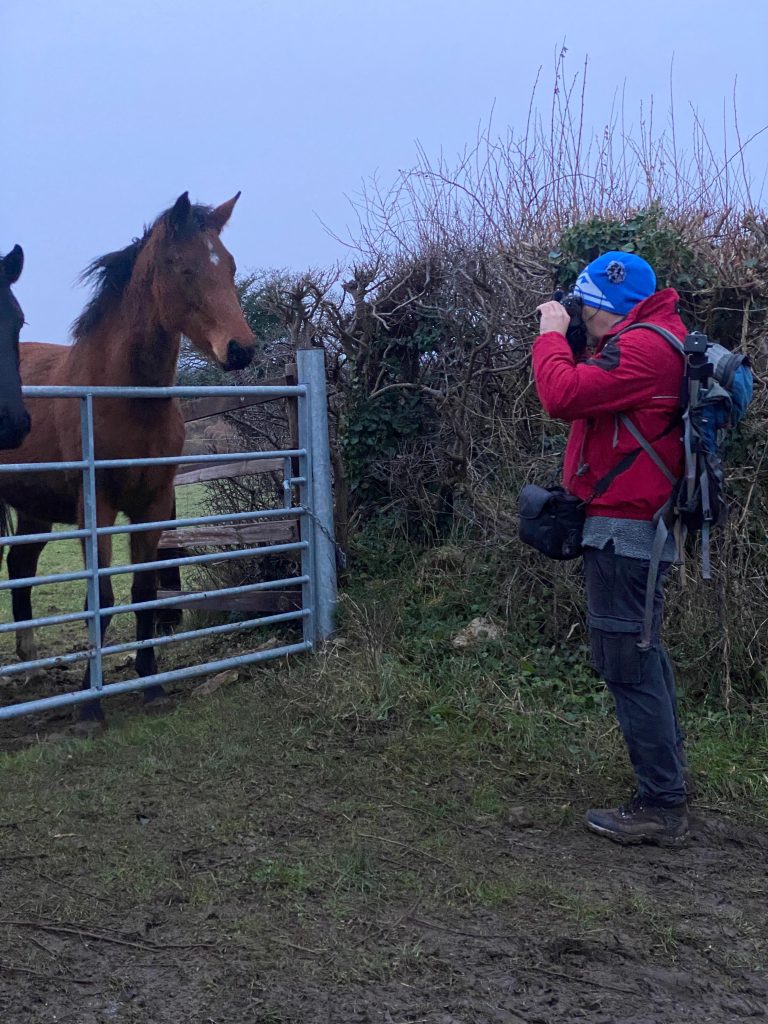 I use some little dead womble fur wind protectors for the EM172s which in gentle breezes are quite effective in reducing wind noise and rumble. And attached to a hat on either side of my head they create a really good stereo image and there’s nothing to hold on to so you can concentrate on getting a good shot with the camera.